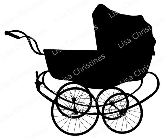 baby carriage clipart black and white