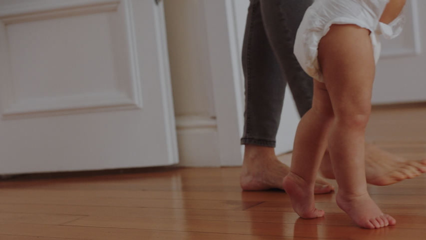 baby learning to walk on hardwood floors