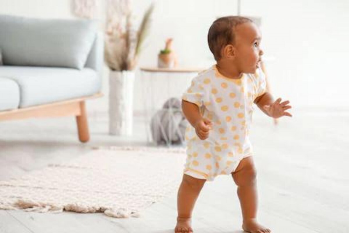 baby walking along furniture