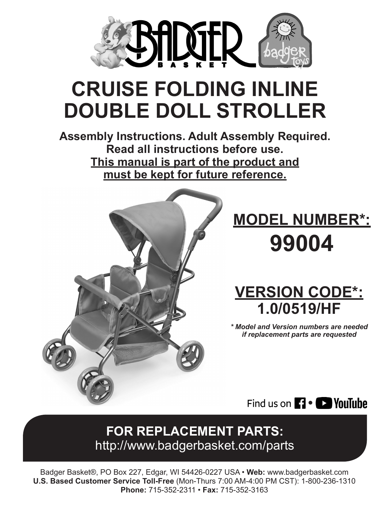 badger basket double doll folding stroller