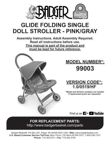 badger basket glide folding single doll stroller