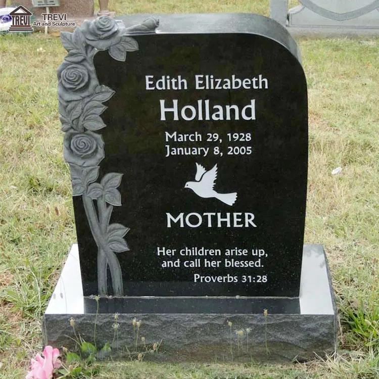 black headstone with picture