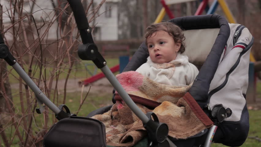 blue childhood stroller