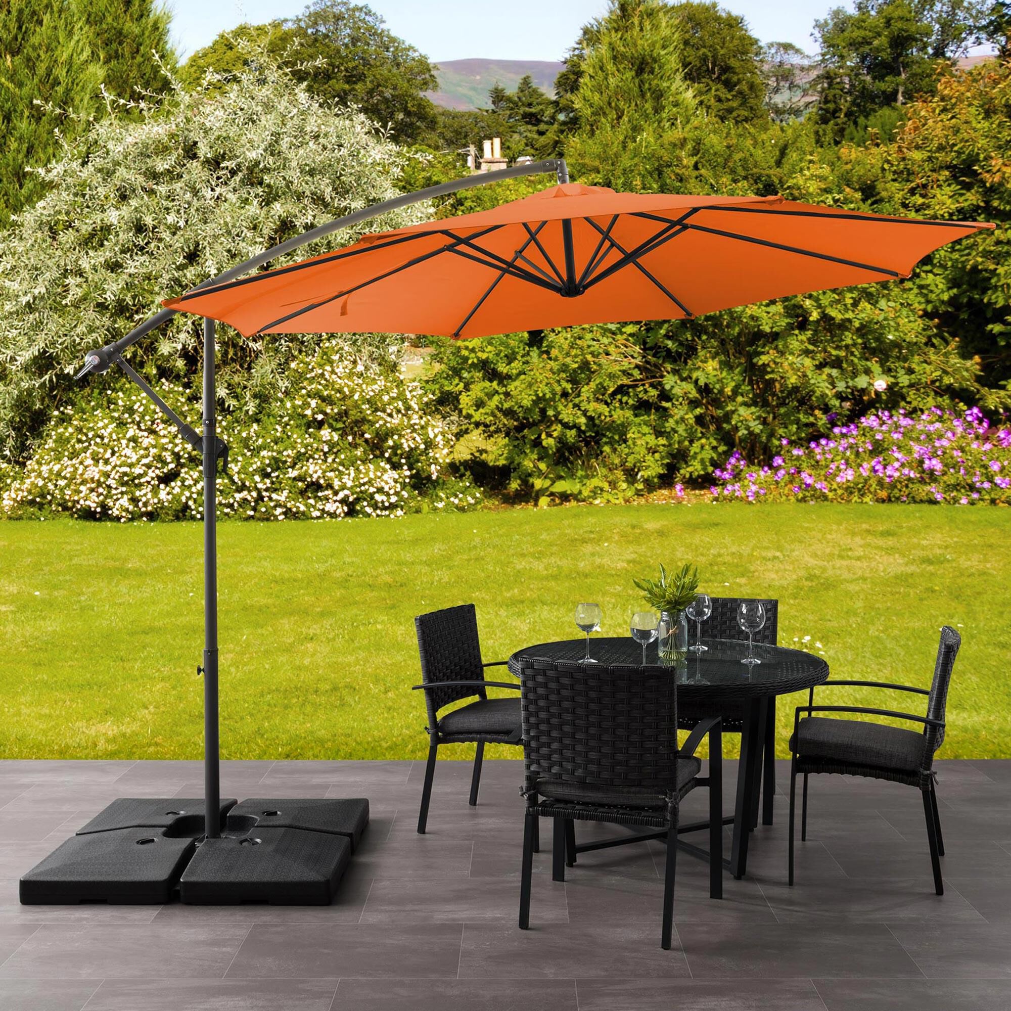 corliving 10 ft uv and wind resistant tilting patio umbrella