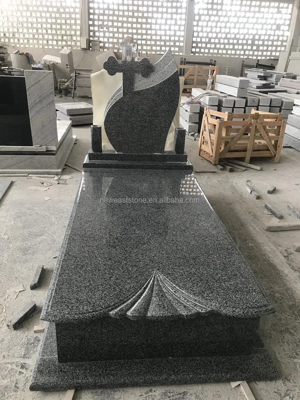 dark grey granite headstone