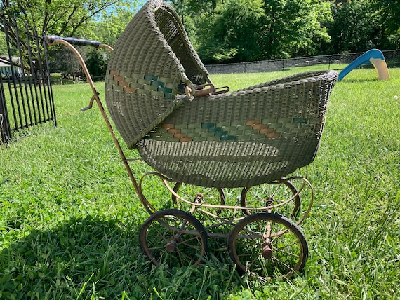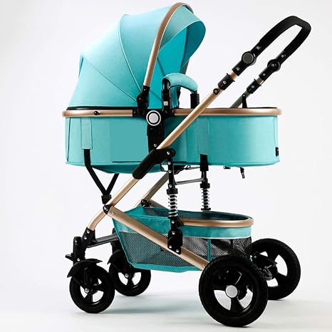 green doll stroller