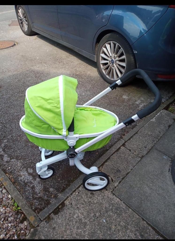 green silver cross pram