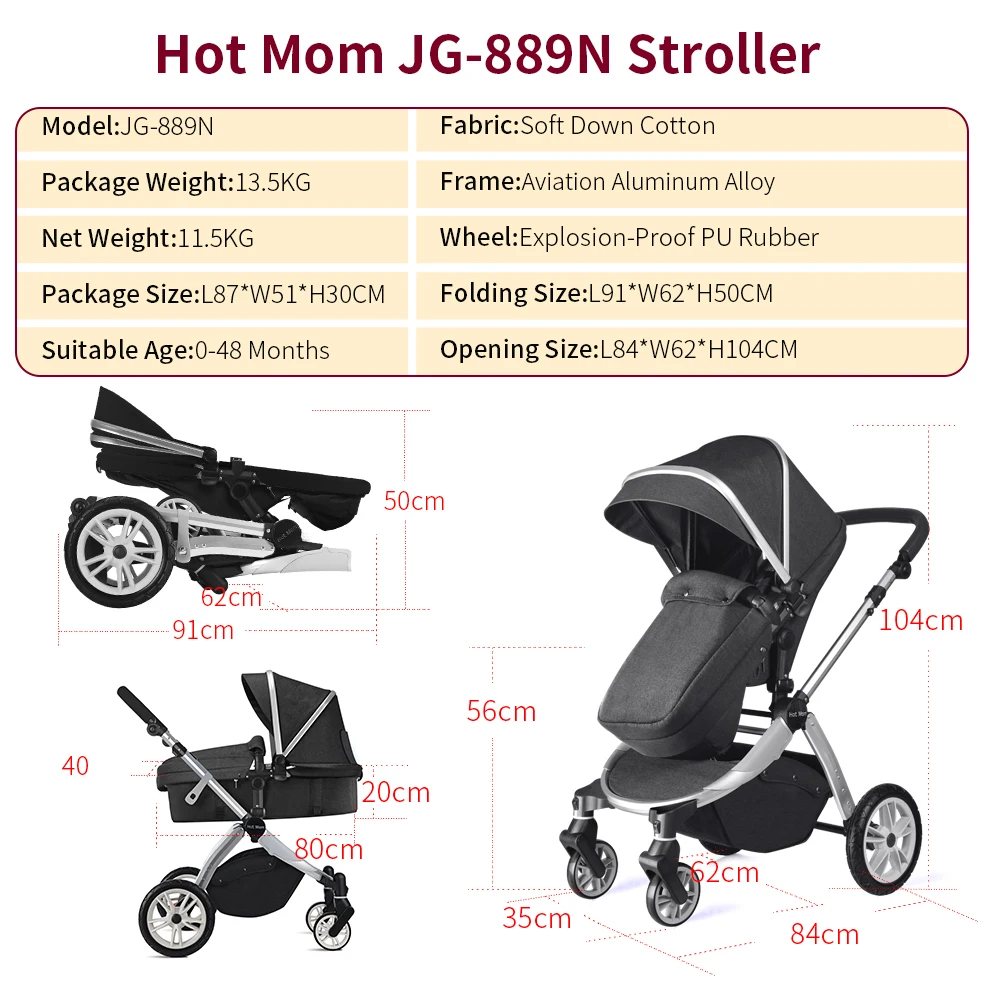 hot mom stroller 2 in 1 pram seat with bassinet