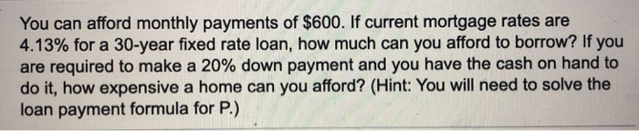 how much mortgage can i get for 600 a month