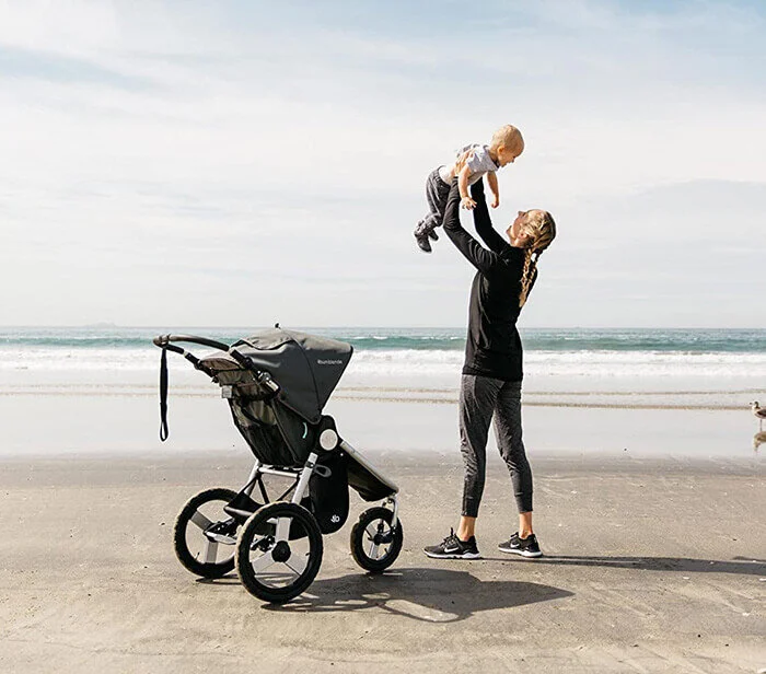 jogging stroller on sand