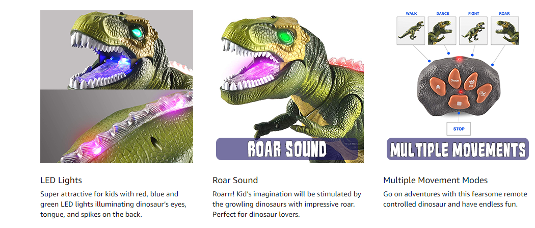 joyin led light up remote control dinosaur