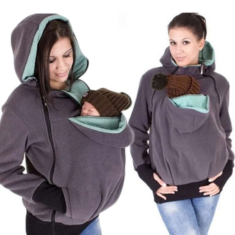 mom and baby hoodie carrier