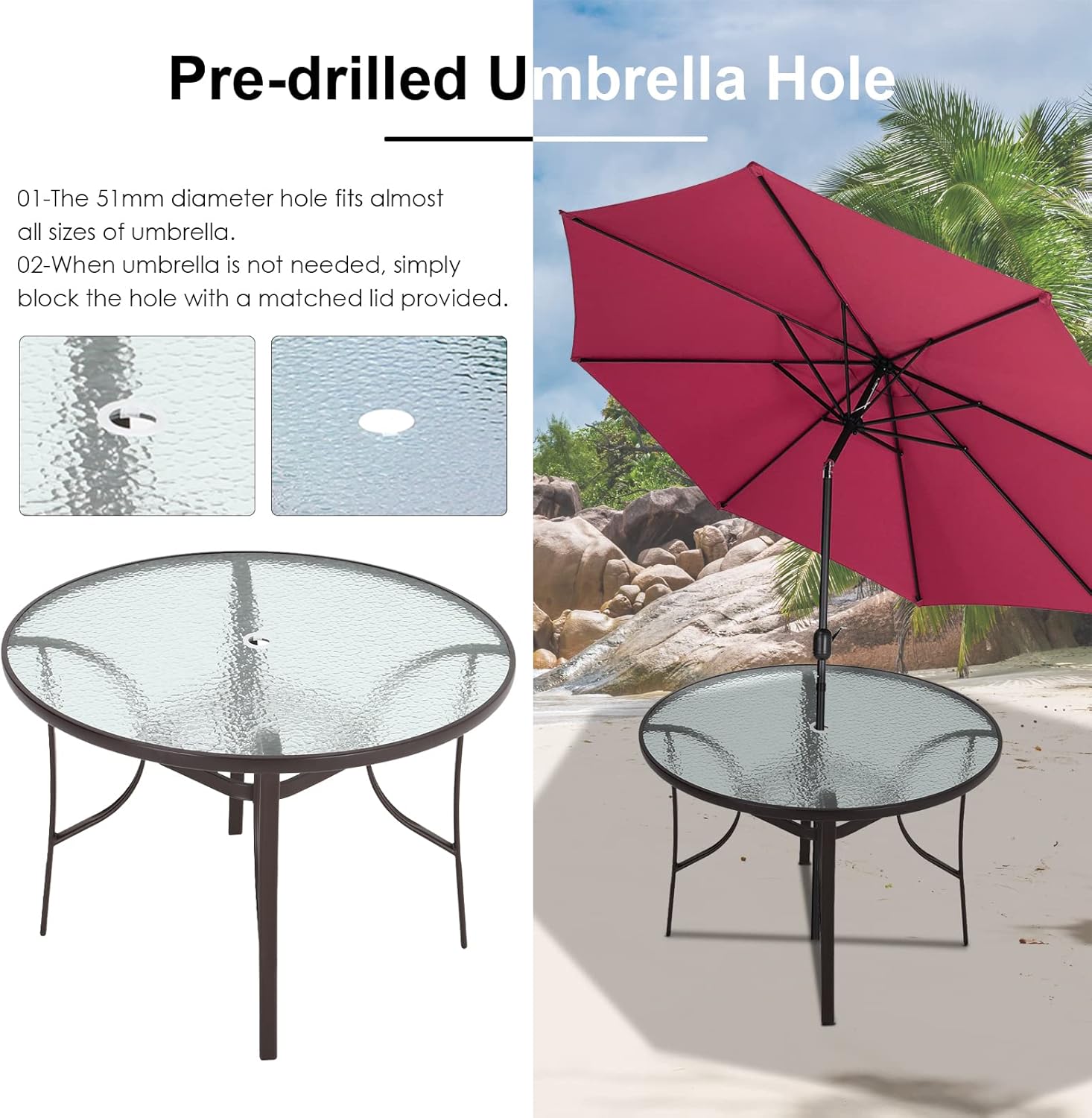 outdoor table top with umbrella hole