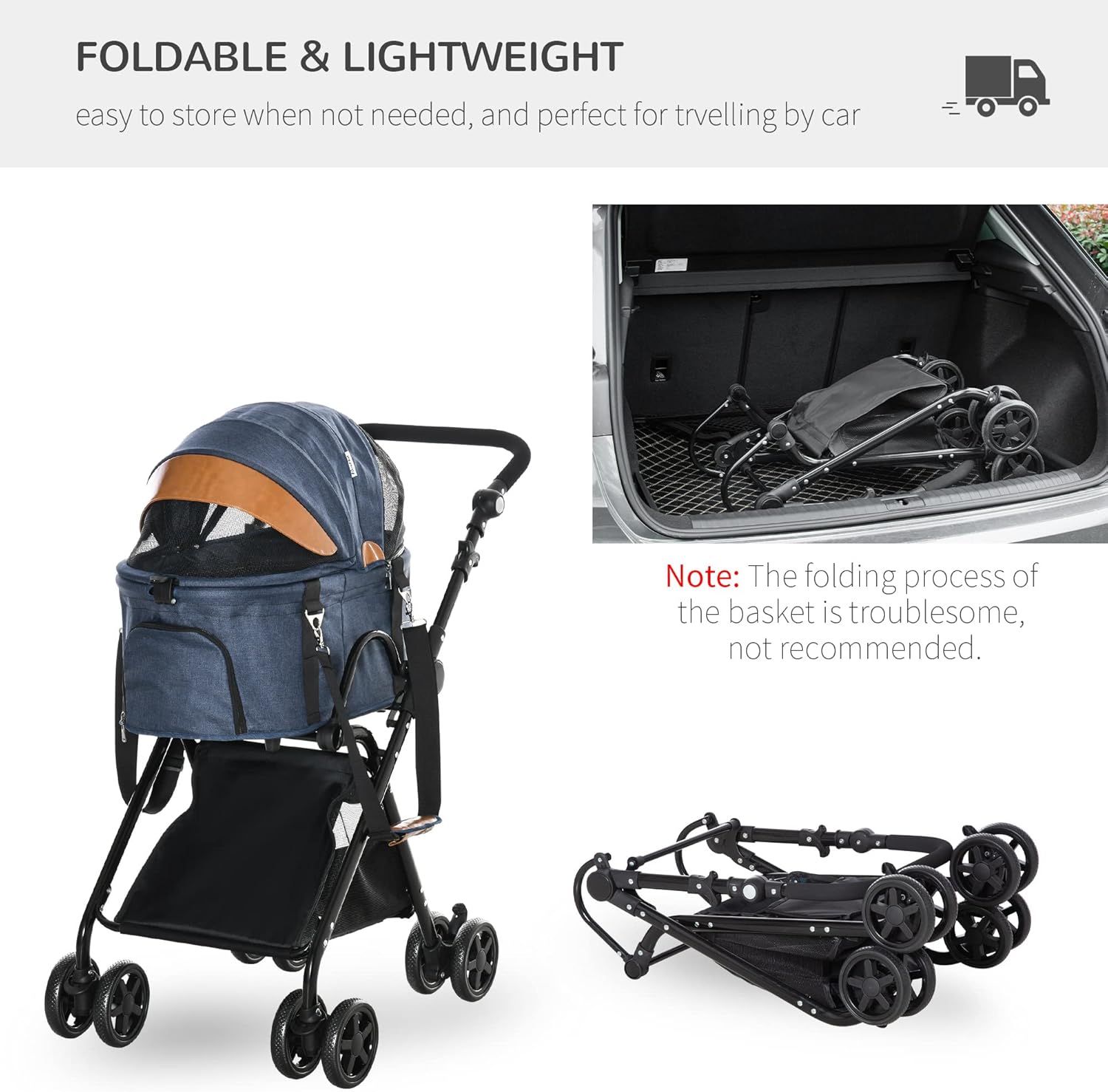 pawhut luxury folding pet stroller