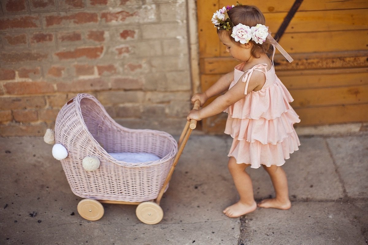 pink wicker pram