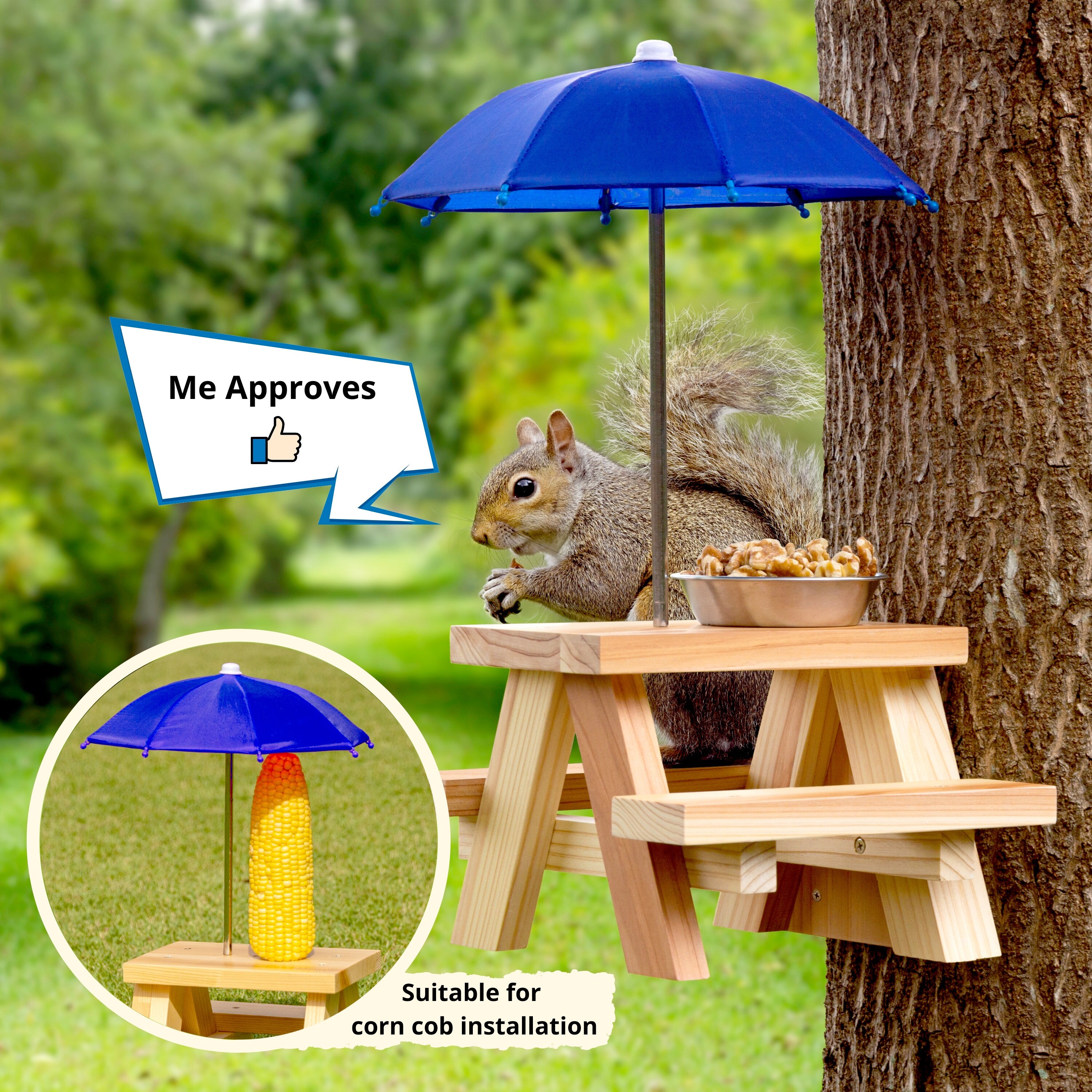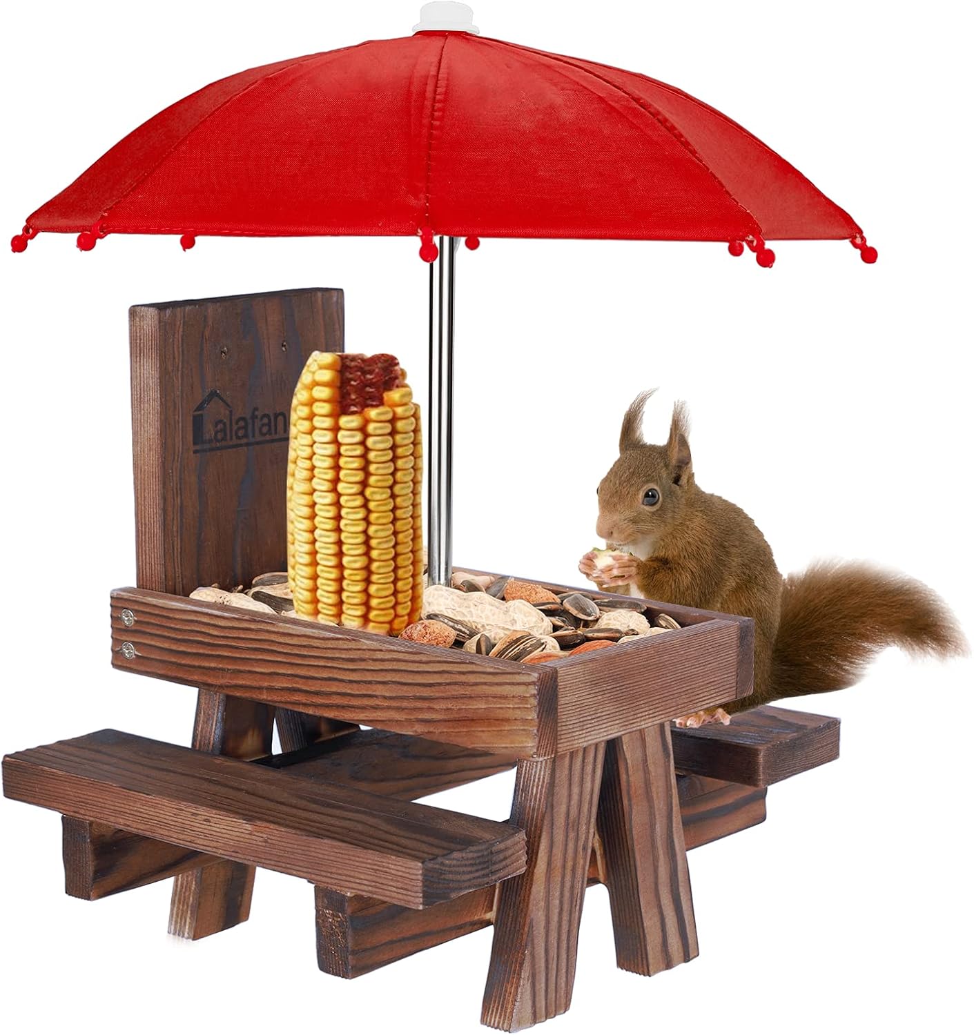 squifty world's best squirrel feeder picnic table with umbrella