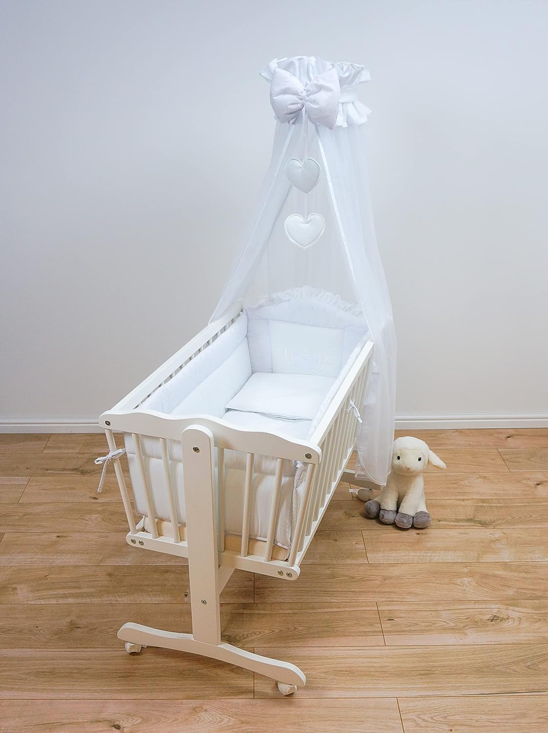 swinging crib with drapes