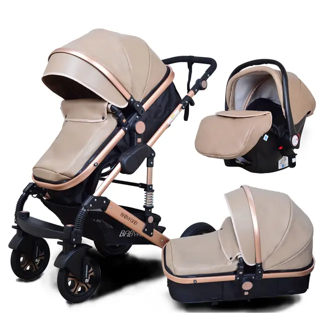 tan stroller and car seat