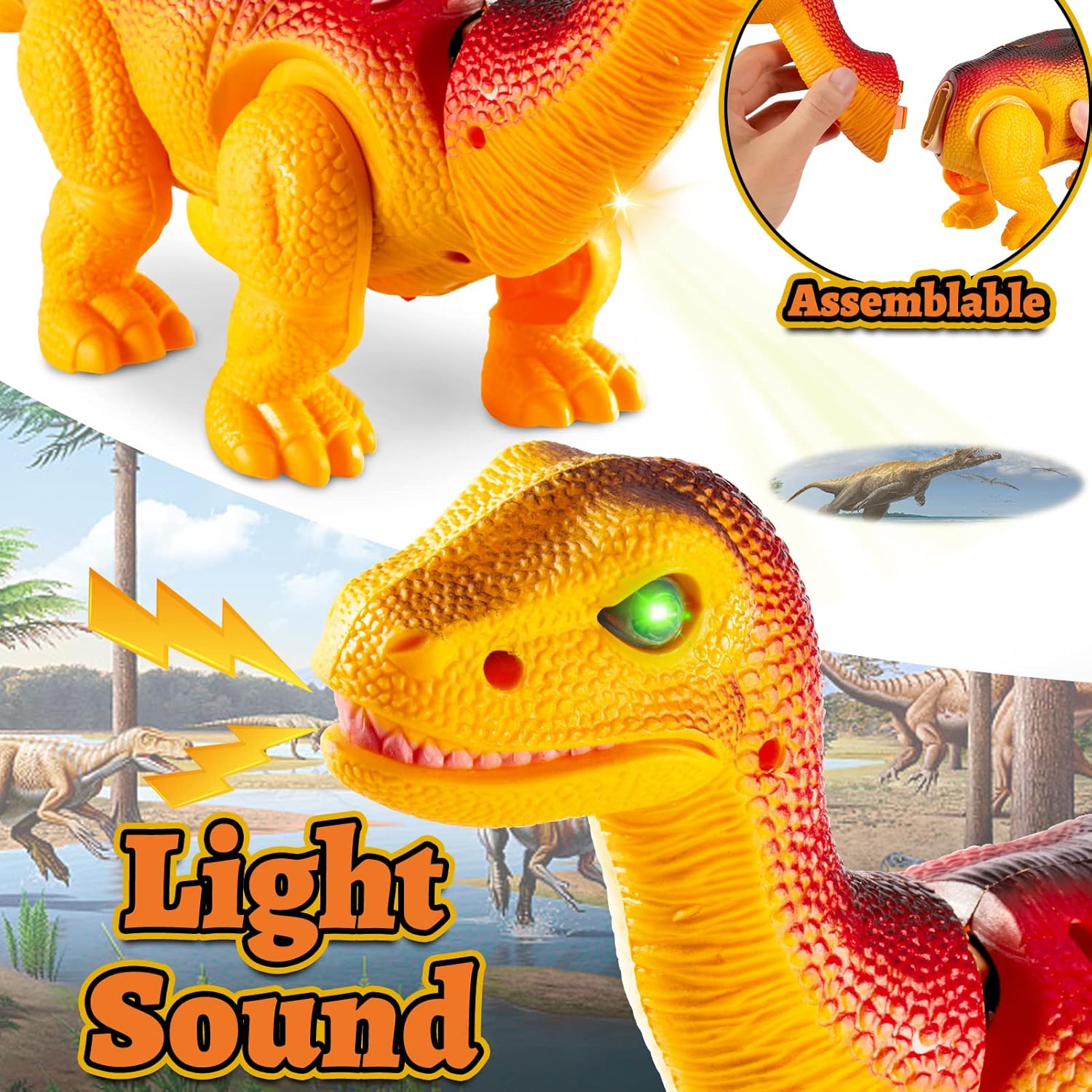 walking brachiosaurus toy with led projector