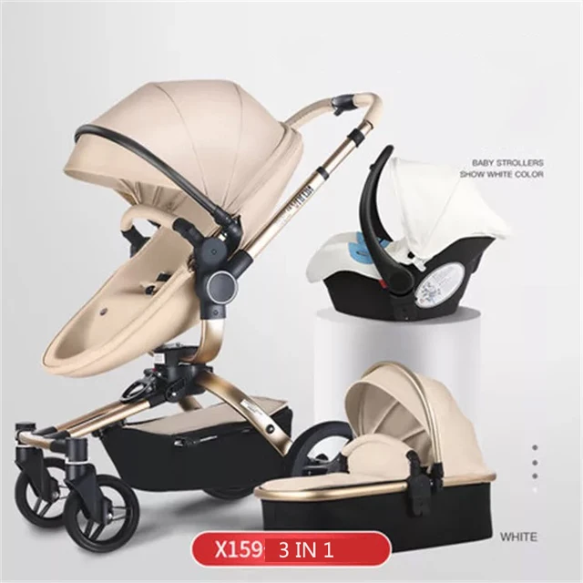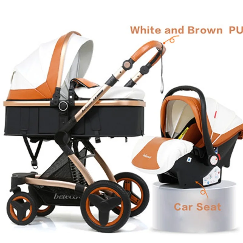 white leather baby stroller