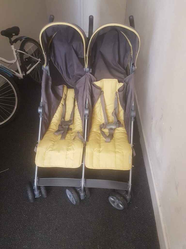 yellow double stroller